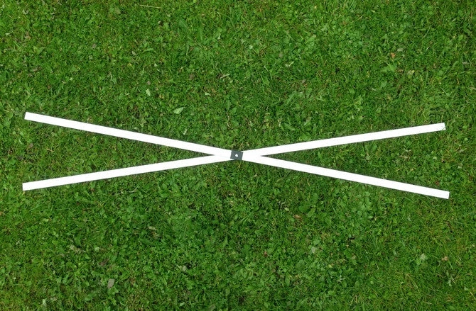 The Cross Bars form the side of the frame and are often in sets of two or three. In many Heavy Duty Gazebos they are also used instead of Roof Bars to form the inside structure. These sets concertina outwards when the gazebo is erected. This Cross Bar is riveted at the centre.